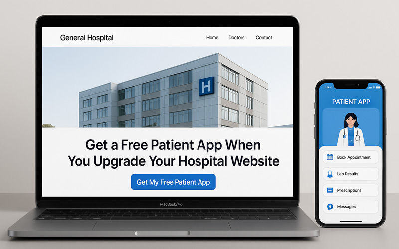 The “Free Patient Mobile App” offer applies only when you purchase a Hospital Website Upgrade package.